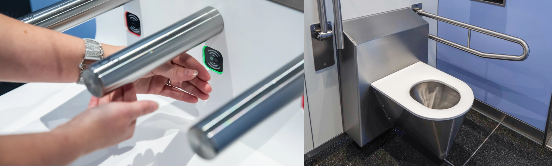 Proximity sensors control the functions of opening the door, flushing the toilet and washing of hands. Because these sensors do not need to be touched, this results in cleaner surfaces and cleaner hands.